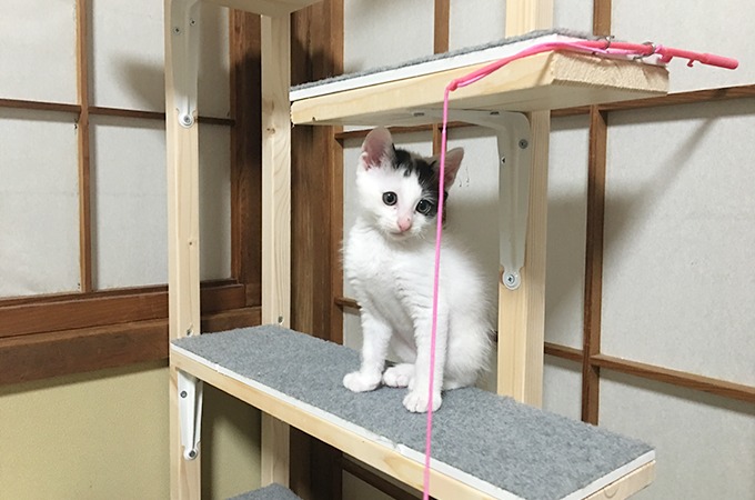 子猫「こばん」用のキャットタワーを自作。意外と良い出来栄え(笑) | M'sのあれこれ。富山の美味いグルメを食べ歩き♪
