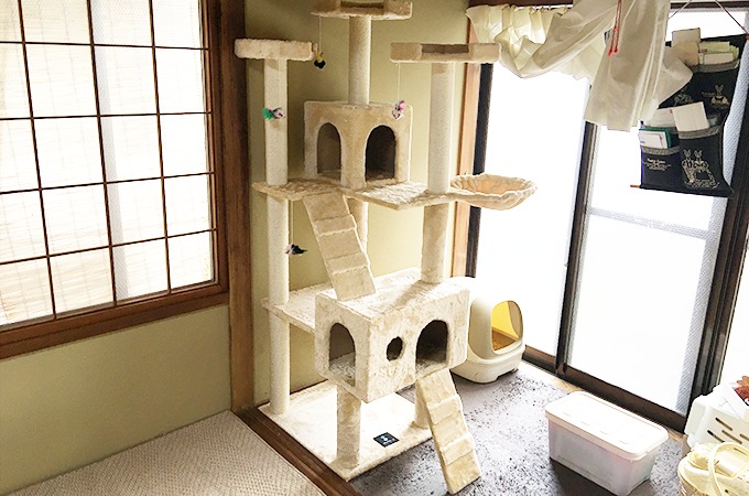 「だいず」は兄猫「こばん」の物を奪ってばかり…。仲良く遊んでもらうためキャットタワーを購入しました。